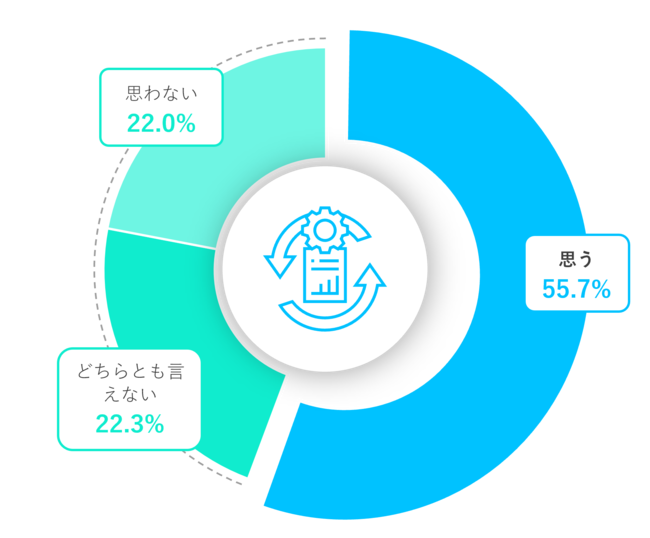 次に「商品情報管理」において誤記載等があった場合、正しい情報を更新するための時間や、それに付随するコスト=「リカバリコスト」が発生していると思うかを聞いたところ、「思う」と「やや思う」と回答したのは55.7%という結果となりました。