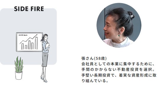 副業程度で出来る不動産投資なら初心者でも将来の不安を抑えられるSIDE FIRE、のびのびと好きなことにチャレンジできる資金的な余裕が生まれるCOAST FIRE、そして不動産投資を本業にして、自由で豊かな人生を送れるFAT FIRE。新ポータルサイトに多く掲載している顧客のFIRE事例から、成功のイメージが描け、一歩を踏み出す勇気が生まれます。