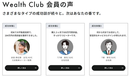 すでに多くのWealth Club会員から成功事例が寄せられています。様々なバックグラウンドを持つ会員が、本サービスを活用して着実に資産を増やしています。