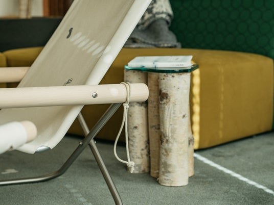 「簡素であり、機能的であり、快適であることから、ニーチェアエックスを選定させていただきました。一家に一台あっても良いと思っています」と、ミナ ペルホネン創設者でありデザイナーの皆川 明氏。環境に馴染み、寛ぎを提供できるデザインに共感を得、これまでも、皆川氏がディレクションを手掛けた宿泊施設『ウミトタ』(香川・豊島)や『cocoon』(千葉・木更津)、積水ハウスのモデルハウス『HUE』(東京・駒沢)などのインテリアにも採用されてきましたが、今回ついに共同開発が叶いました。