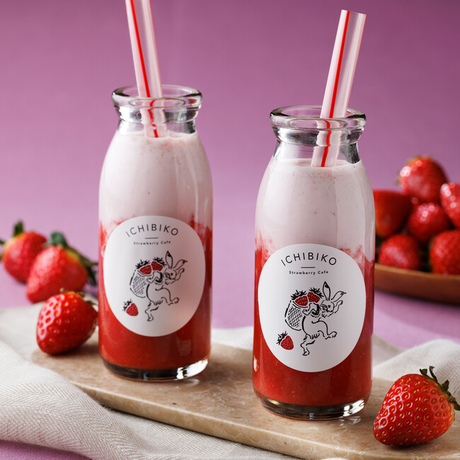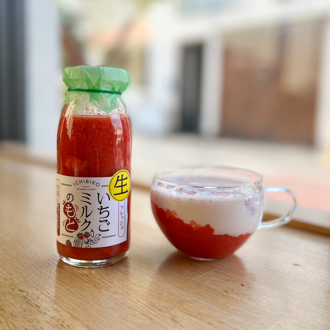 いちびこの「いちごミルク」は、いちごたっぷり、いちごが主役。いちごがおいしいこの季節に、いちごとミルクのうれしい組み合わせをご提案いたします。完熟もぎのファーム直送の濃くて甘くてフレッシュないちごの赤と、まろやかなミルクの白が混じりあってひとつになって、一口飲めば華やかな香りの余韻が続きます。甘くてしあわせな、いちごミルクのおいしいひとときをお楽しみください。