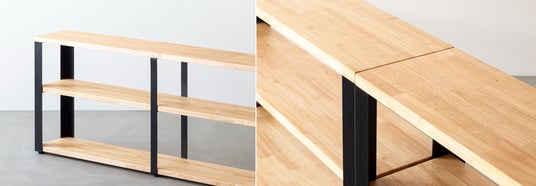 既存モデルのTHE SHELFをゼロから見直して、幅と奥行の両方を1cm単位でサイズオーダー可能にし、収納棚としての拡張性を最大限に高めました。