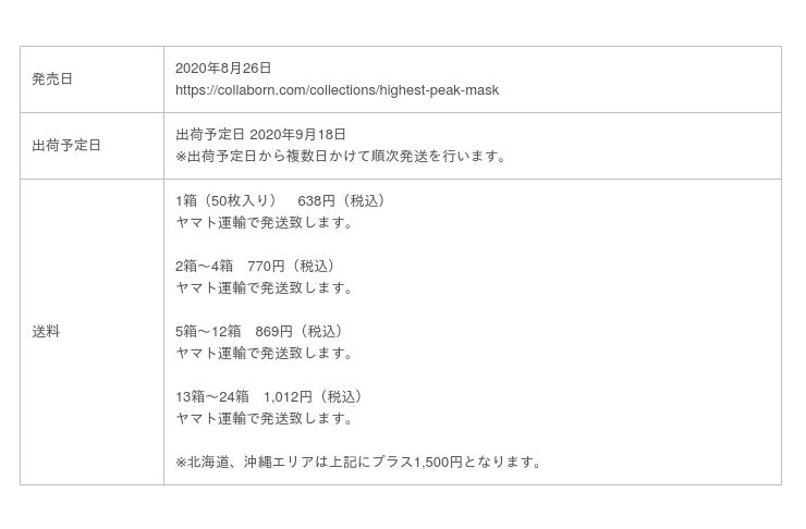 販売サイトはこちら:https://collaborn.com/collections/highest-peak-mask