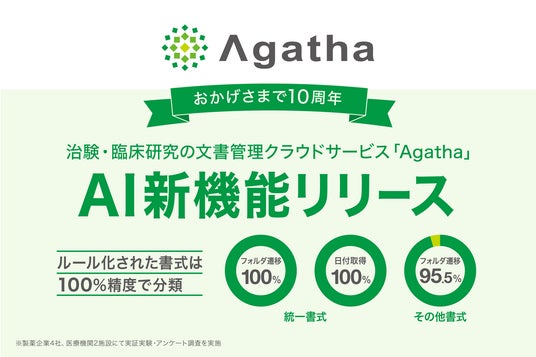 アガサ株式会社(本社:東京都中央区、代表取締役社長:鎌倉千恵美、以下「アガサ」)は、治験・臨床研究に特化したDXクラウドサービス『Agatha(アガサ)』において、AIエージェントが文書登録業務を支援する「文書登録補助機能」を2025年7月1日に正式リリースすることをお知らせいたします。