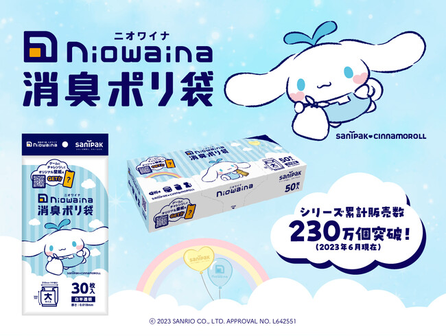 消臭ポリ袋「ニオワイナ」の中でも人気の高い2商品をシナモロール 限定パッケージで数量限定発売します。