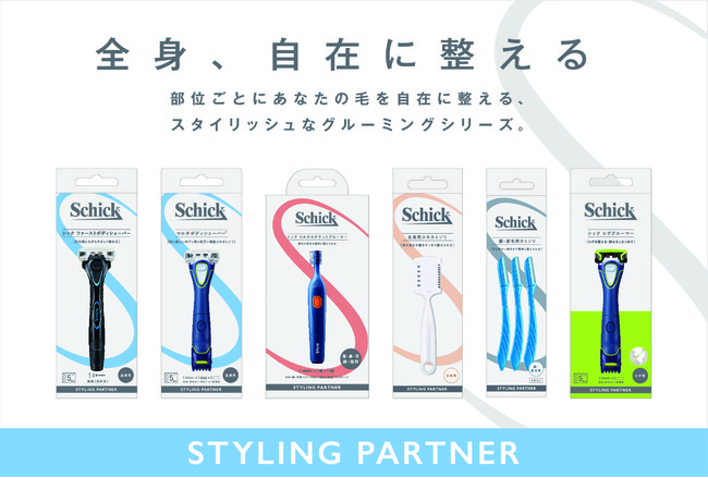 スタイリングパートナーとは、“1歩先のヒゲ・ボディグルーミング習慣をサポート”するSchickブランドの新しい商品群です。「髭はムダだから剃るもの」「髭剃りは作業的でつまらない」「ボディヘアのケアは男性ではなく、女性がすること」、このような過去の考えは投げ捨てて、自分ならではのスタイルで、新しいものを追いかけ、自分自身のスタイルを表現したい。そう願う人々をサポートするのがシックのスタイリングパートナーです。