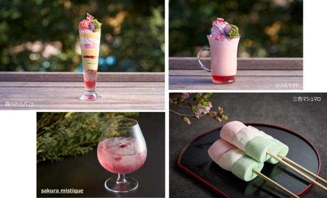 日帰りのお客さまでも楽しめる「森のさくらパフェ」をはじめ、春色スイーツ&ドリンクを期間限定で提供