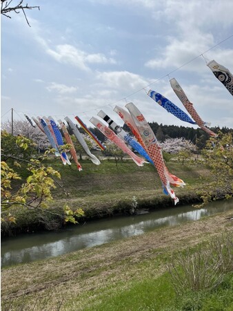 市原市にある村田川では、毎年4月の上旬になると地元の有志団体が川の上空に約120匹のこいのぼりを設置します。4月上旬は桜も見頃を迎え、桜とこいのぼりの共演を楽しめます。