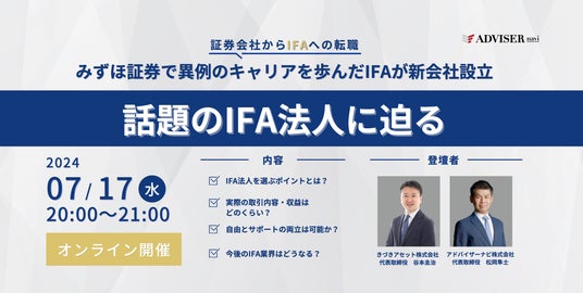 IFA特化の転職サービスを運営する『アドバイザーナビ』がウェビナーを開催します。〈2024年7月17日(水)20:00~21:00〉