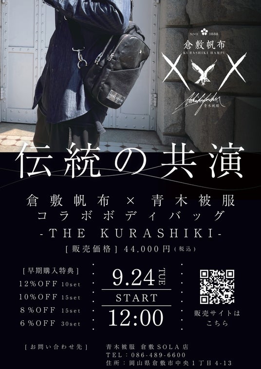 コラボレーションラインから先行してBODY BAG-THE KURASHIKI-が9月24日12:00~受注スタートとなります。