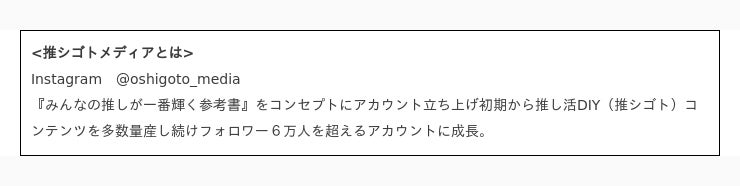 『みんなの推しが一番輝く参考書』をコンセプトにアカウント立ち上げ初期から推し活DIY(推シゴト)コンテンツを多数量産し続けフォロワー6万人を超えるアカウントに。推し活するならまずはここから。