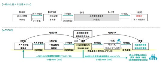 今回の業務提携では、「e.CYCLE(いいサイクル)」により発生する利益の一部を地域活性化資金として秋田県八峰町、八峰町を所在地とする風力発電事業者に還元するエコシステムの構築を行っております。
