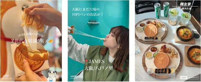 (写真:左から、大王チーズ10円パン / JAMES FMH / 韓友家 )