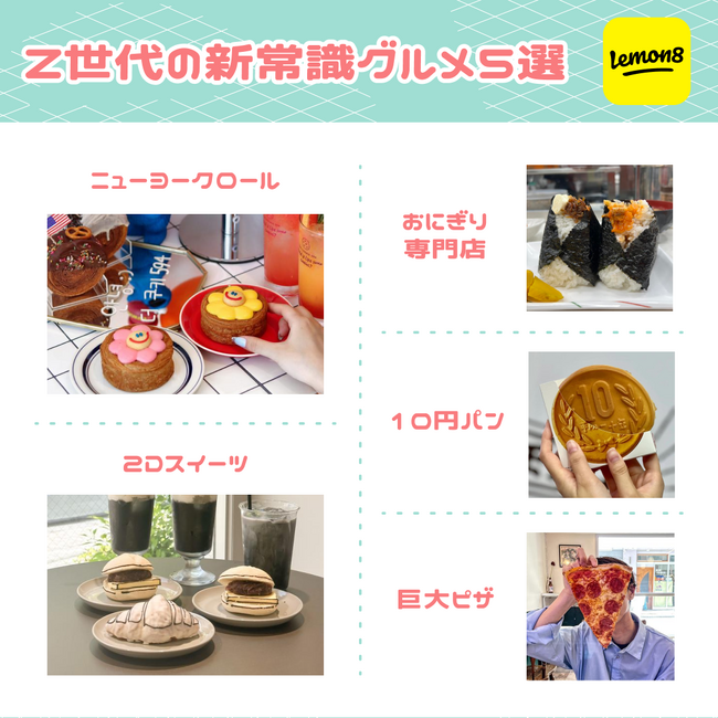 ライフスタイル共有アプリ「 Lemon8(レモンエイト)」は、1月1日から6月30日の間にLemon8内で投稿された約5万のグルメ投稿から、アメリカ生まれの新感覚クロワッサン「ニューヨークロール」や、まるでイラストのような見た目の「2Dスイーツ」など、Lemon8グルメクリエイターが注目した、最新トレンドグルメ5選を発表します。