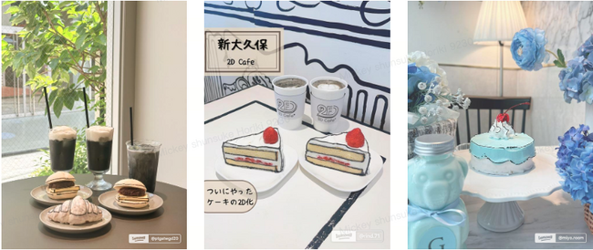 (写真:左から The Unknown Cafe Gallery Harajuku / 2D Cafe / Ginger Garden Aoyama)