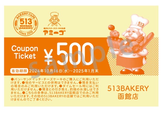 可能となります。513BAKERY 函館店以外の店舗で はご利用いただけません。