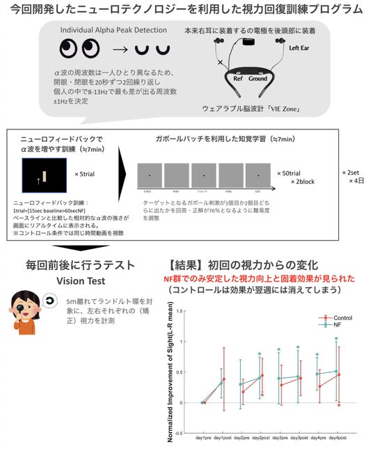 近視のヒトを対象としたウェアラブル脳波計を用いたニューロフィードバック試験により短期間の視力改善に成功