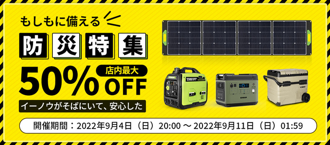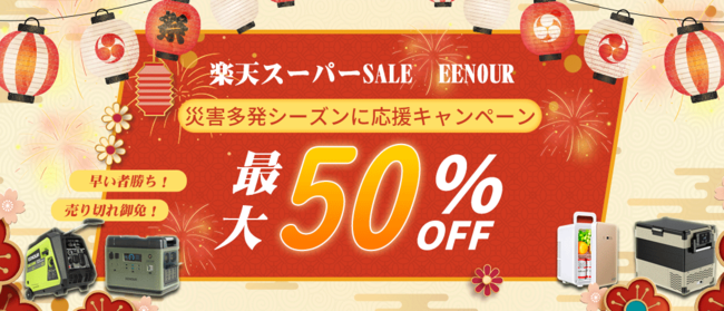 今回、当店は『楽天スーパーSALE&EENOUR連動企画、最大50%OFF+ポイント46倍』の激安な企画を実施中です。防災対策商品を揃え、ぜひお見逃しなく~