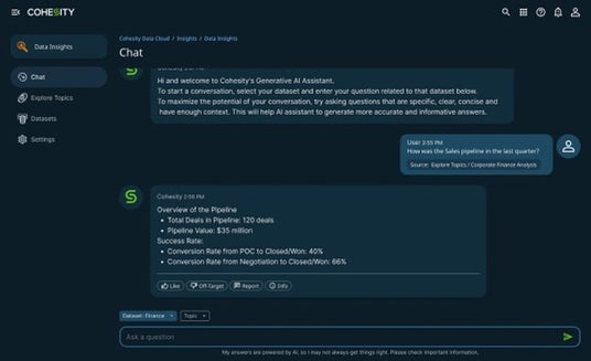 Cohesity Gaiaの新しいデータエクスプローラー機能は、顧客のデータセットをセマンティックインデックスに基づいて視覚的にマッピングし、質問とクエリの候補リストを作成します。