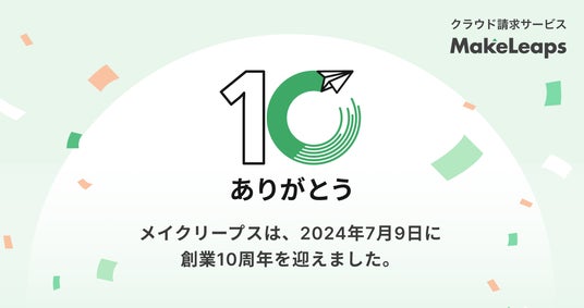 リコーグループのメイクリープス株式会社(本社:東京都目黒区、代表取締役社長:岡田 泰、以下メイクリープス)は、2024年7月9日に会社設立10周年を迎えました。当社が提供するクラウド型請求管理サービス「MakeLeaps」をご利用、応援いただいているすべての皆さまに感謝し、特設ウェブサイトをオープンいたしましたことをお知らせいたします。今後も「MakeLeaps」は変わりゆく法制度に随時対応し、お客様にとってなくてはならない存在となるよう、日本の中小企業の経営基盤を支えるサービスを提供し続けてまいります。■10周年特設ウェブサイト:https://www.makeleaps.jp/special/10th-anniversary/