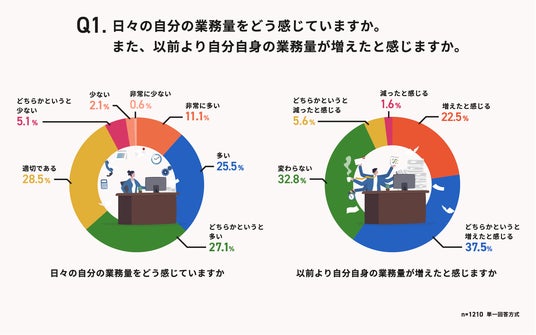 約6割が「業務が増えた」、64%が「業務が多い」と実感