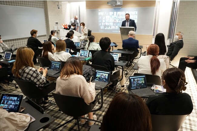 神田外語グループ(東京都千代田区/理事長 佐野 元泰)の専門学校である神田外語学院(東京都千代田区/学院長 今井 実)は、海外の提携大学と協力し「社会課題×異文化理解×国際交流」をテーマとする「オンライン国際交流プログラム」を共催しています。2021年度より始まった本プログラムは、今回で5回目。2023年5月~7月にかけて、全3回(各90分)実施します。学生は、ボリス グリンチェンコ キエフ大学(ウクライナ)、ハノイ大学(ベトナム)、ストロード大学(イギリス)など海外提携大学の学生たちとのオンラインワークを通して、さまざまな国の文化について学んでいきます。5月30日(火)におこなわれたセッションでは、興味のある学問や趣味などを話し合うアイスブレイクの後、自国の言葉を英語で紹介して相手に理解してもらう言語アクティビティをおこないました。次回のセッションでは、伝統文化やファッションなどのポップカルチャー、食文化などについて、スライドを用いて英語で5分間紹介するオンライン発表を予定しています。