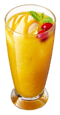「2種のマンゴークリームソーダ」はバニラアイスとマンゴー果肉のとろける食感を楽しみながら、炭酸ソーダのはじける刺激が、夏の喉を潤してくれるクリームソーダです。