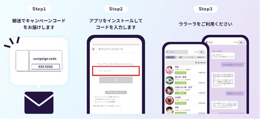 - 「キャンペーンコード」を受領された株主様は、占いアプリ「ウラーラ」をお手持ちのスマートフォンにインストールの上、アプリ上で「キャンペーンコード」の入力をお願いいたします。入力後、2,000ポイントが付与されます。
