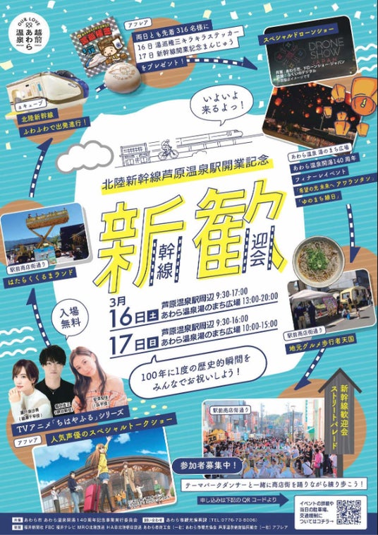 2024年3月16日の北陸新幹線芦原温泉駅の開業日とその翌日に、新幹線開業を記念しお祝いするあわら市のイベント。