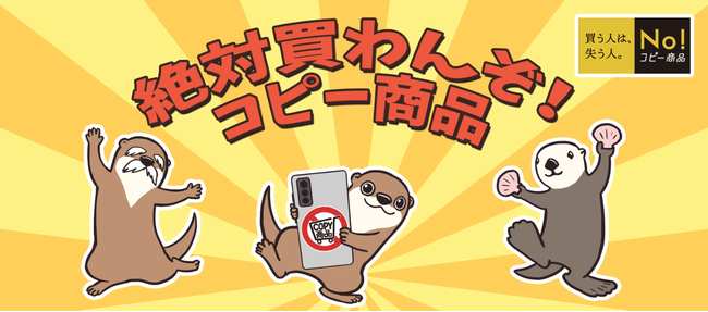 また、このカワンゾちゃんは絶対にコピー商品を買わないという強い意志を持ち、消費者に対してコピー商品を買わないよう訴える存在であることから、キャッチコピーをイメージキャラクターに合わせて「絶対買わんぞ!コピー商品」としました。