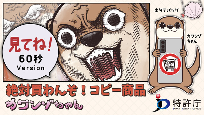 令和3年商標法・意匠法改正により、令和4年10月1日から模倣品の水際取締りが強化されました。これを受け、特許庁では、消費者のみなさんにコピー商品の危険性や見分け方をお伝えする「コピー商品撲滅キャンペーン」を刷新し、新たにカワウソの「カワンゾちゃん」をイメージキャラクター、「絶対買わんぞ!コピー商品」をキャッチコピーとして、「カワンゾちゃん」が登場する新しいウェブサイトと動画を公開しました。