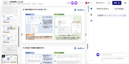 - Web検索・File検索: Webからの外部情報の収集や、社内データベースから目的に沿った資料を探し出すこともチャット上で行えます。