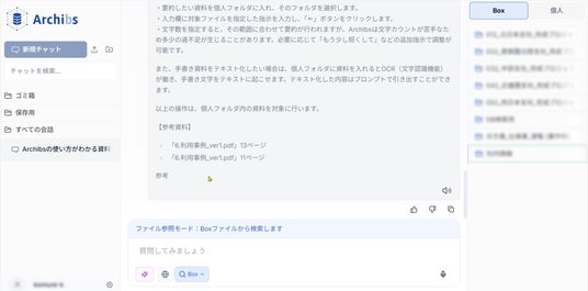 - Box連携RAG(Retrieval-Augmented Generation): ショーボンド建設が蓄積する数百万件規模のファイルから回答を生成。