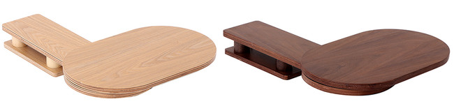 天板は角が取れた楕円形の優しいかたちです。表面は、天然木の突板を使用しているため高級感があります。素材は、ナチュラル色(タモ材の突板)、ブラウン色(ウォールナット材の突板)と2色展開になっており、ソファやインテリアに合わせて色をお選びいただけます。