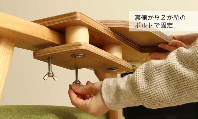 3.裏側の2か所のボルトを締めて固定できたら完了です。