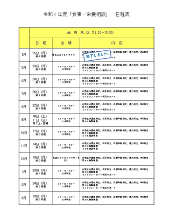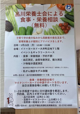 品川区食事・栄養相談概要場所:イトーヨーカドー大井町店地下1階(東京都品川区大井1丁目3-6)