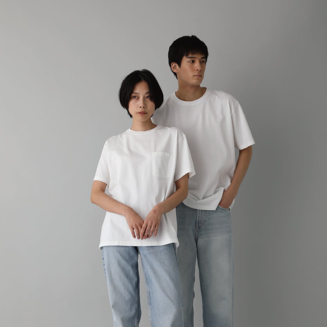 長く愛用してもらえるもの、それは環境に優しい。 超長綿であるアメリカ産シーアイランドコットン[※1]をあえて太めのオープンエンド糸[※2]にすることで、独特のハリとコシを感じられる丈夫な生地となります。その生地を使い自社の徳島工場で1枚1枚丁寧に縫製し仕立てたTシャツは100回洗濯しても変わらず長く愛用してもらえる製品です。製品制作過程の細部に至るまで、受け継がれてきた技術を取り入れ、ゆっくり時間をかけて仕上げた日本のものづくりの魅力がたくさん詰まったシリーズです。 [※1]アメリカで栽培される繊維長、強度、色艶などで優れた特性を持つ高品質な超長綿花。 [※2]空気の力で精紡をしている糸。出来上がった生地はシャリ感のある硬めな風合いでボリュームのある質感。
