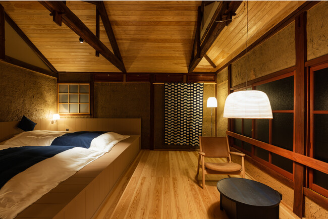歴史的な町並みが残る八女福島の伝統的建築物を改修した2つの建物にそれぞれコンセプトの異なる計3室を設けています。各部屋1~4名様でご宿泊頂けます。なお、和紙の部屋は離れとなっています。