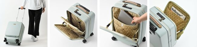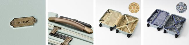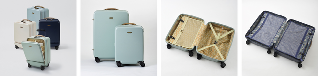 アンティークなカラーリングと細やかなあしらい、ヨーロッパ調の壁紙を思わせる内装に旅の気分が高まるフレンチシックなハードキャリー。オトナ女子に人気の同ラインナップに、フロントオープン式が新たに加わりました。