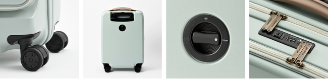 揺れる車内や坂道での不意な走行を防ぐ、キャスターストッパー付き。米国領土への旅でも施錠したまま荷物を預けられるダイヤル式TSロックを採用。貴重品を入れて持ち運ぶ際も安心です。
