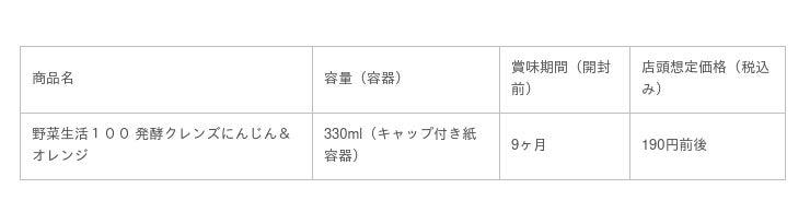 「野菜生活100 発酵クレンズ にんじん&オレンジ」は、発酵技術を用いた人参原料とオレンジ果汁を使用した、キレイを内側からサポートする野菜・果実ミックス飲料です。コクがありつつもすっきりとした性状で、砂糖不使用ながら発酵オレンジ果汁などをブレンドすることで、飲みやすく満足感のある味わいに仕上げています。発酵技術を用いた人参原料を使用することで糖質30%オフ(※1)を実現しています。また、1本に2食分の野菜を使用(※2)し、食物繊維も手軽に摂れる点も嬉しいポイントです。