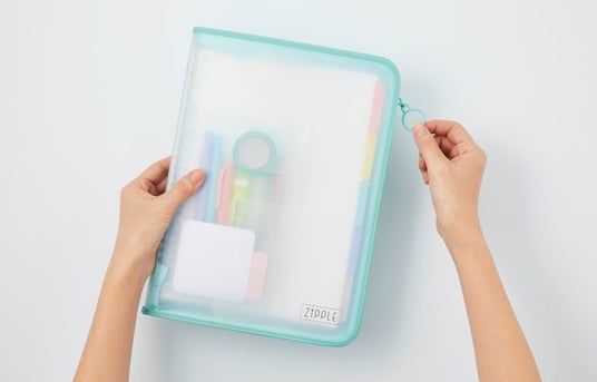 バインダー表紙に周囲をぐるっと閉じられる“ぐるっとジッパー”付き!ルーズリーフやプリントだけでなく、文具・小物・ガジェットまでをまとめて収納でき、持ち運びを快適に。