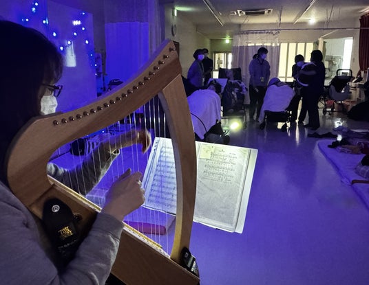 ホスピスや緩和ケア、病院、高齢者施設などで、患者さん一人ひとりのそばでハープの生演奏を提供する音楽家。演奏は単なるコンサートではなく、目の前の方の状態、その人らしさに寄り添いながら進められます。