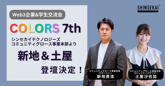企業のユーザーコミュニティ運営を一気通貫で支援するサービス「MURA(ムーラ)」を運営する株式会社SHINSEKAI Technologies(本社:東京都渋谷区、代表取締役:大社 武、以下:当社)のコミュニティグロース事業本部マネージャー新地貴浩と、コミュニティデザイナー土屋沙也加が、2024年1月17日(水)にグローバルビジネスハブ東京(東京都千代田区)にて開催される「COLORS 7th」に登壇いたします。