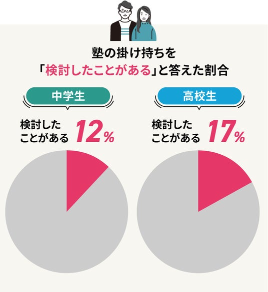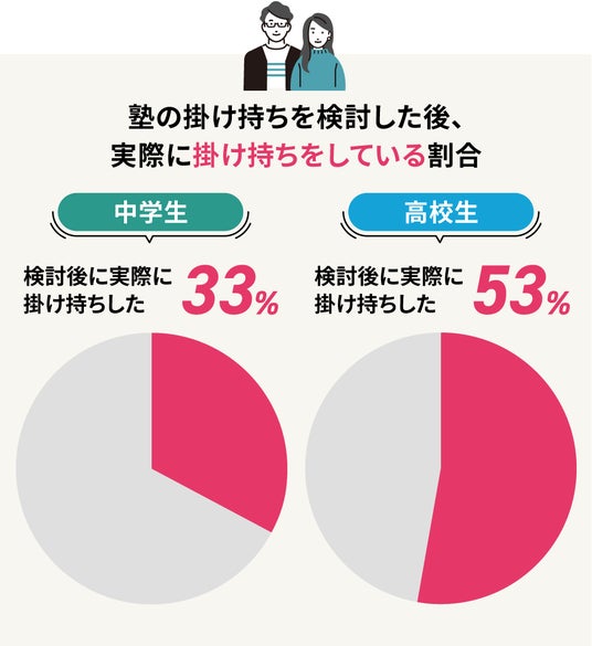 アンケート結果によると、検討後に塾の掛け持ちをはじめた方の割合も、高校生の保護者の方が高いことがわかりました。