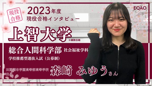 ・上智大学公募推薦専門塾EQAOは上智大学生インフルエンサーの「上京大生いとをかし」さんが上智専門コースのアンバサダーに就任しています。