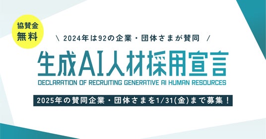 生成AIを社会に実装し、産業の再構築を目指す一般社団法人生成AI活用普及協会(理事長:井畑 敏、所在地:東京都千代田区、英称:Association to Generalize Utilization of Generative AI、以下:GUGA)は、生成AI人材(※)を採用する意志を表明する共同プロジェクト「生成AI人材採用宣言プロジェクト2025(以下:本プロジェクト)」に賛同いただける企業・団体さまの募集を2025年1月7日(火)より開始いたします。92の企業・団体さまにご賛同いただいた2024年に引き続き、生成AIを活用するリテラシー・スキルを有する生成AI人材の必要性を求職者に訴えかけ、日本社会が前進するきっかけの創出を目指します。