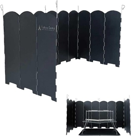 TokyoCamp焚き火台はもちろん、他メーカーにも対応のウインドスクリーン。1枚約40cmのスチール素材は風よけ板が12枚で風から焚き火を守り、安定した焚き火を楽しめます。焚き火台への風防・保温性効果、さらにはスタイルにもこだわった自分だけの焚き火空間を提供します。