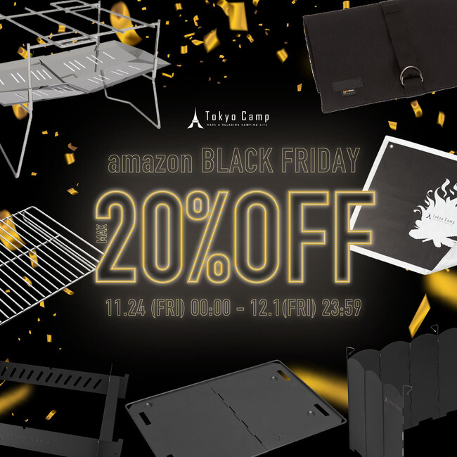「ブラックフライデー」はAmazonプライム会員のお客様にむけたビックセールイベント。ベテランキャンパーから好評の"TokyoCamp焚き火台"や焚き火にぴったりの"TAKIBI VEST"などが最大20%OFFとお買い得になります。
