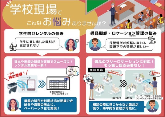 「ロケーション管理機能」は、学校や企業の倉庫などに保管されている物品のタグを読み取り、保管場所の情報を一括付加することにより、移動の多い物品の保管場所の管理を簡単にする機能です。